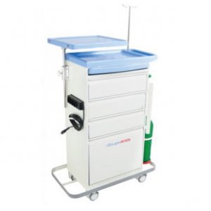 - Este carro é um equipamento versátil, utilizado no ambiente hospitalar para administração de medicamentos e curativos