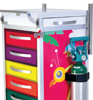 • Suporte para tubo de O2 em aço inox com cinta velcro.