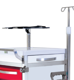 • Bandeja para cardioversor/desfibrilador, em aço inox ou acrílico com duas cintas Velcro.
