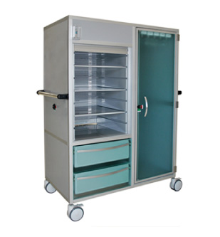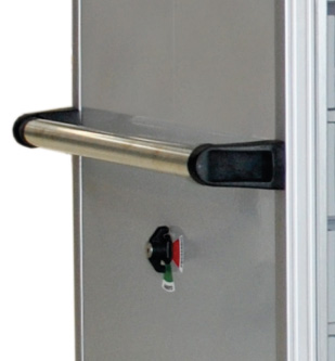 · Porta do compartimento de cateteres em polímero ABS com tecnologia antibacteriana, dobradiças em aço inox com abertura possível de 180º, puxador em alumínio, fechamento com chave.