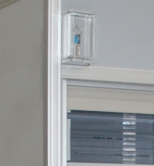 · Sistema exclusivo de travamento único para as portas persianas e as gavetas, através de chave com fechaduras com fecho lingueta manopla. Possui uma caixa com tampa e abertura com lacre, para armazenamento da chave que possibilita a abertura de todos os compartimentos confeccionado em acrílico cristal 4mm