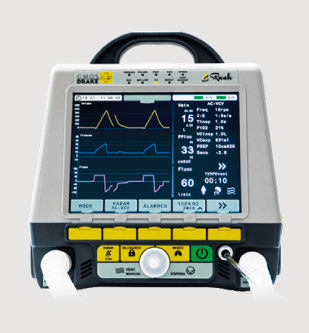 Tecnologia de ponta, leve, portátil e robusto. Tela de 10.4″ touch screen com 3 curvas simultâneas na tela (volume corrente, fluxo e pressão) e avançado sistema de alarmes técnicos e fisiológicos.